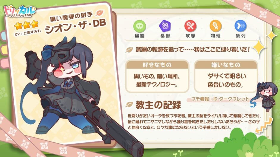 トリッカル もちもちほっぺ大作戦に登場する「シオン・ザ・DB」のスキル・ステータスや強さを評価した内容をまとめていきます。シオン・ザ・DBと引いた際に、またシオン・ザ・DBを狙っていこうと思った際に、確認するために当記事を参考にしてみてください。