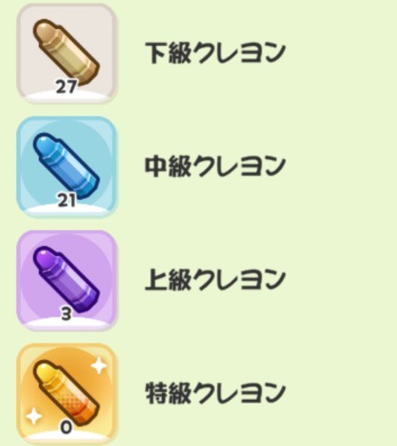 最も重要なクレヨンです。特級クレヨンをいかに多く入手し、効率的に利用するかが、ゲームで使徒を強くするための最重要ポイントの一つです。