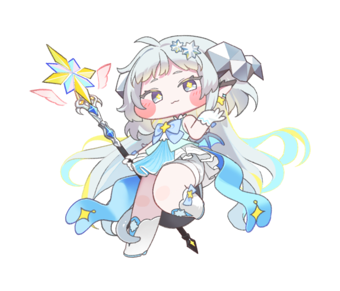 空中へジャンプ後に魔法陣を召喚し、全味方のシールド効果を上昇させる。指定射程内の最も遠い敵に「純真☆ビーム」を発射し、6回の範囲魔法ダメージを与える。最後の一撃はより高いダメージを与え、敵の与ダメージを低下させる。