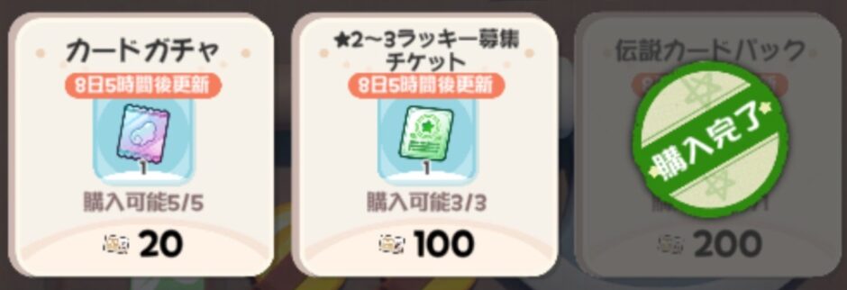 その他、余裕があればカードガチャ、星2~3ラッキー募集チケットを交換でも良いです。